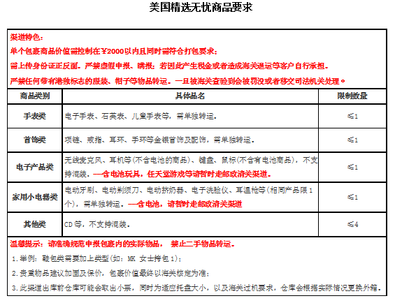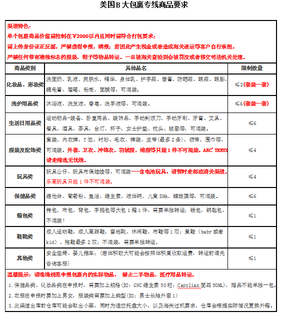 即日起,美国仓无忧线路(小包C线、大包B线、精选无忧线)内件限制做出了以下调整,请留意。具体可以参考官网线路说明,给您带来的不便,敬请谅解!