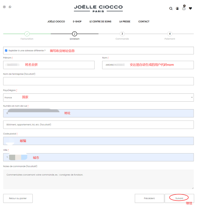 下单前在安达易官网获取法国仓库收货地址和账单/发票地址,没有账号的小伙伴可以点击注册 >>> 注册即可获得1000爱豆奖励,同时还将获得一张满300减20的运费优惠券