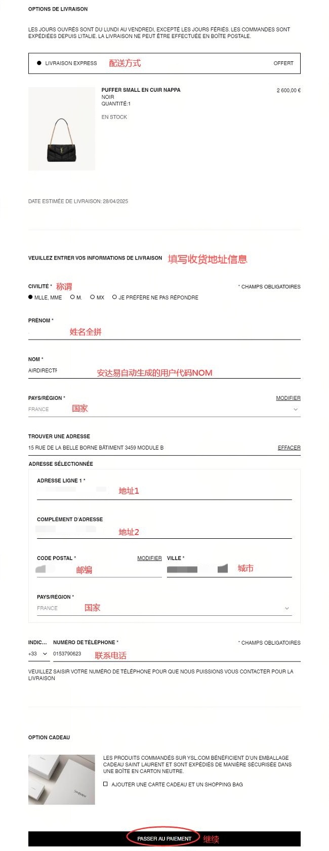 下单前在安达易官网获取法国仓库收货地址和账单/发票地址,没有账号的小伙伴可以点击注册 >>> 注册即可获得1000爱豆奖励,同时还将获得一张满300减20的运费优惠券
