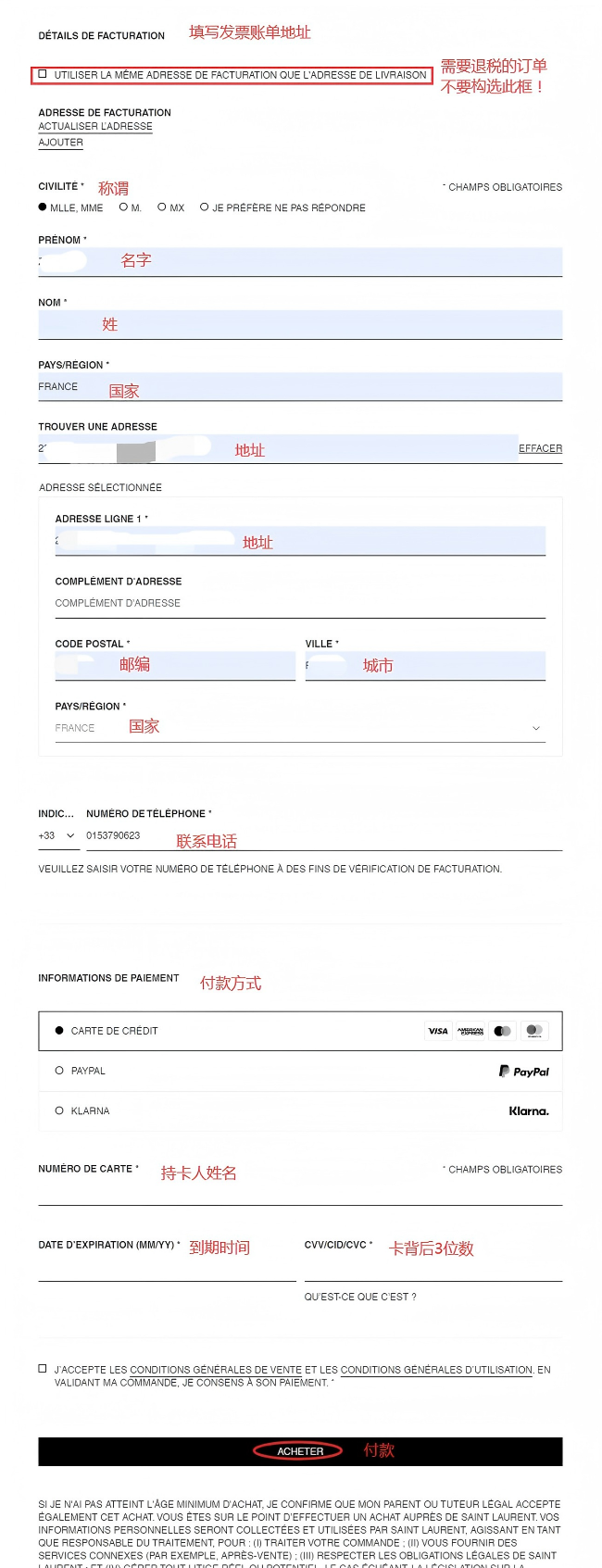 电商下单时分别填写收货地址和退税发票地址,退税包裹需要完全按照我们给出的退税发票地址和姓名填写!